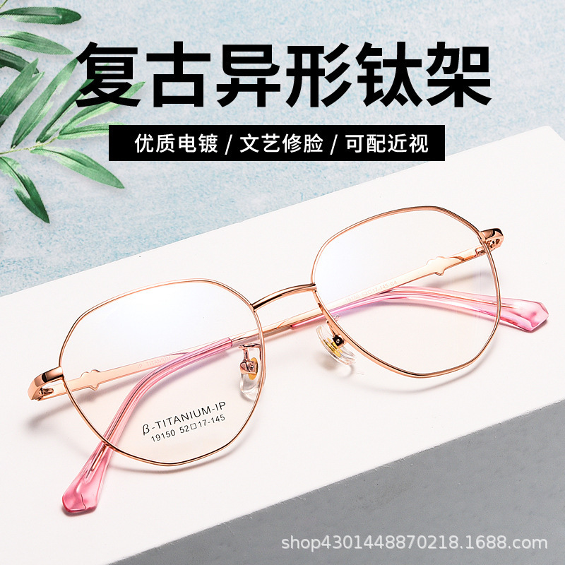 メーカー卸売りレトロ眼鏡ファッショントレンド純チタン眼鏡フレーム男女学生近視眼鏡19150