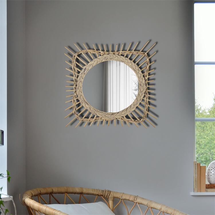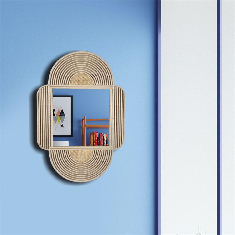 北欧竹編み鏡民宿装飾鏡壁飾り壁掛け化粧鏡フレーム写真撮影道具