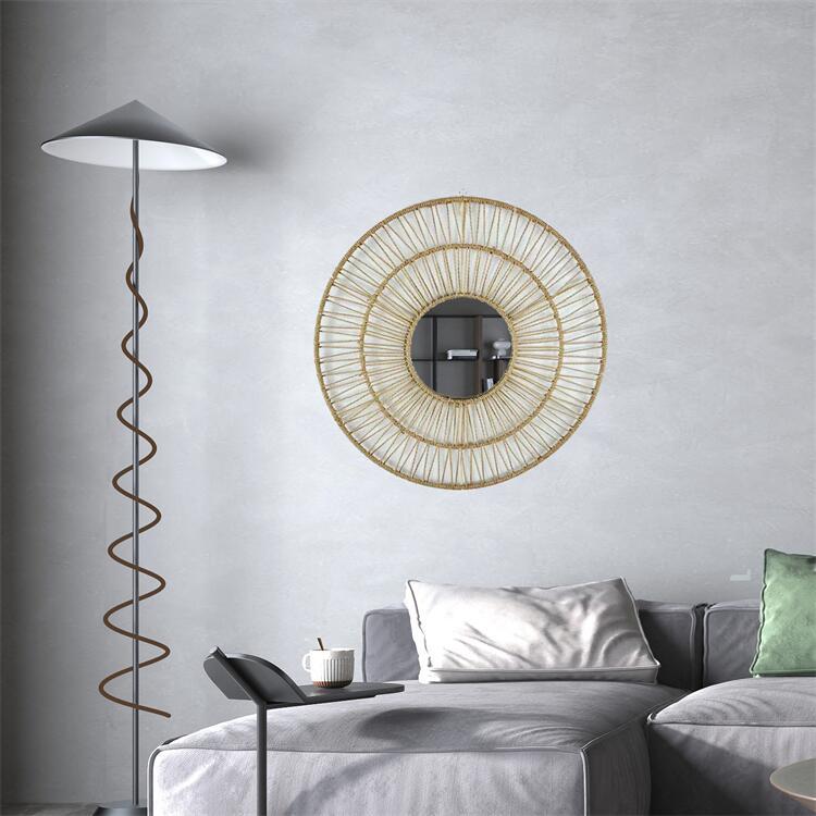 紙縄鉄芸装飾鏡民宿客間寝室壁掛け装飾鏡円形化粧鏡枠