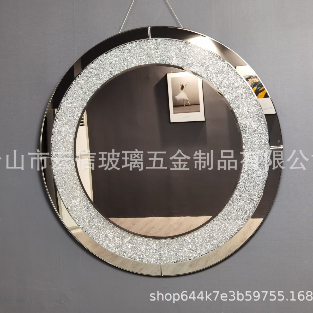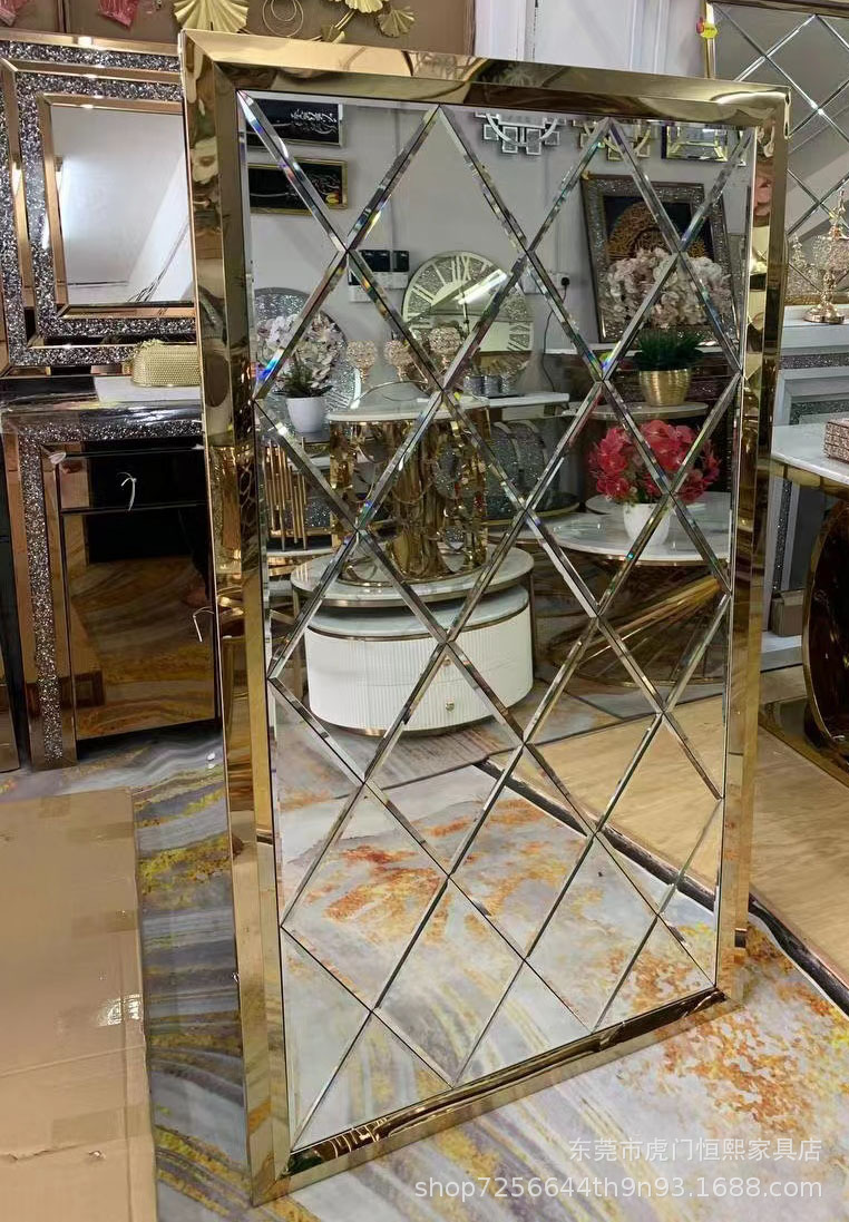 2023新型客間軽贅沢ダイヤモンド金属チタン金装飾鏡背景壁ガラス立体鏡面玄関鏡