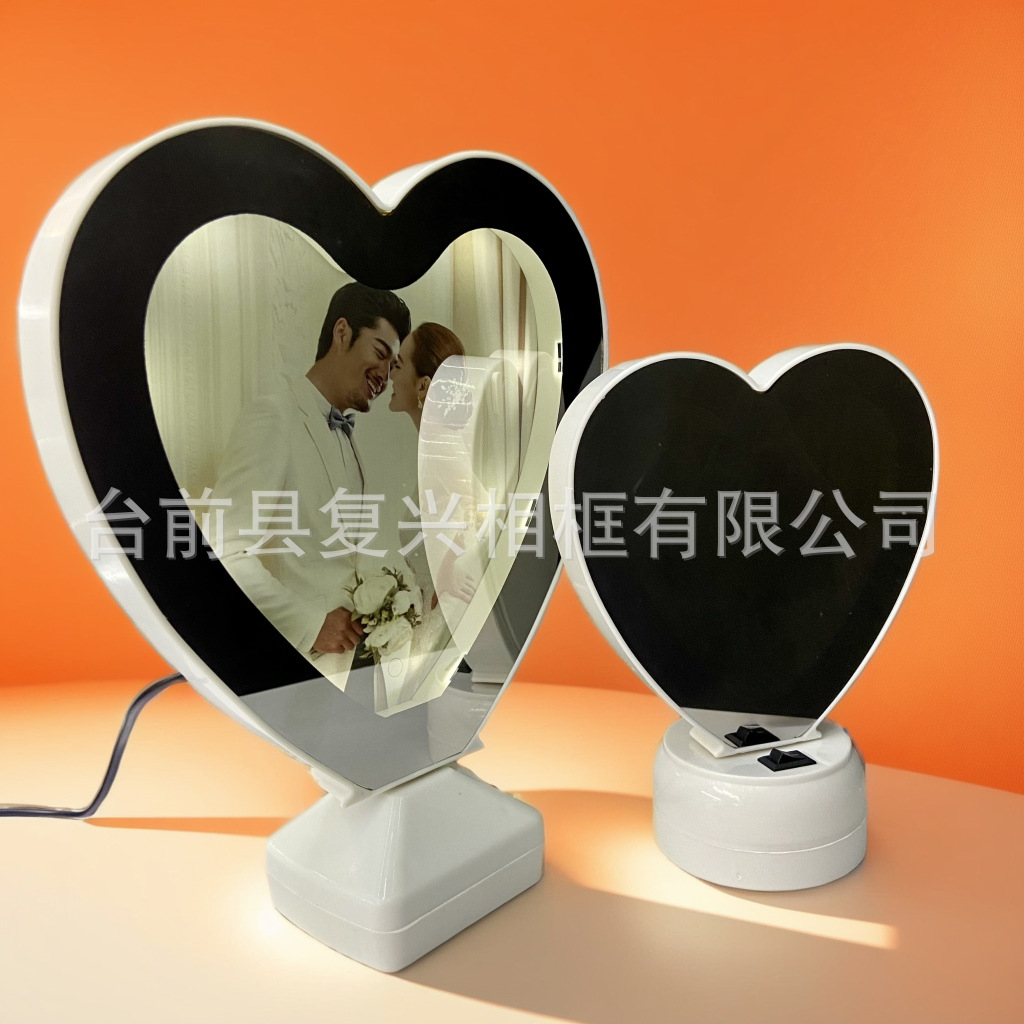 愛ハート形魔鏡化粧鏡愛フォトフレーム影楼置物発光led電気スタンド小夜灯プレゼント創意