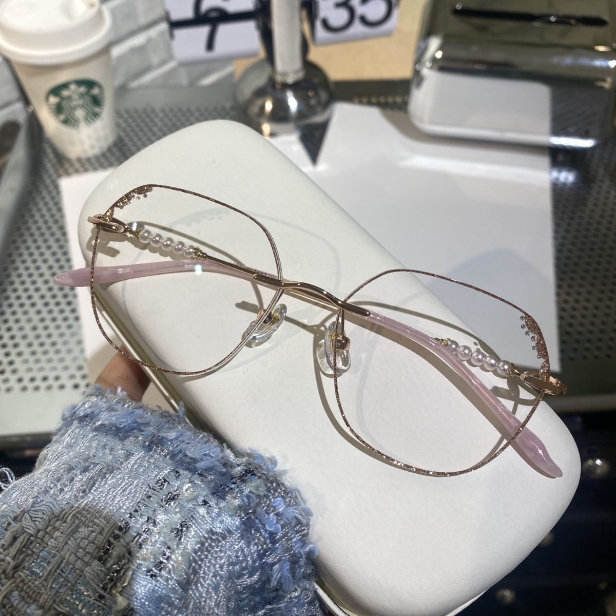 新品純チタン眼鏡フレームレス近視老花気質クラシックレディース人魚姫ダイヤモンドエッジカットハイエンドパール