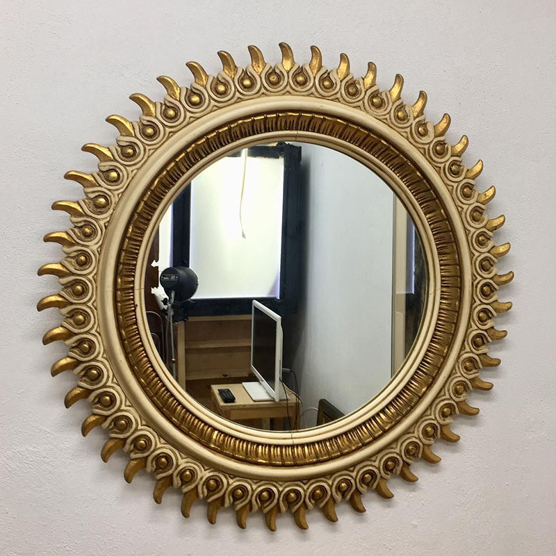 鏡を飾って壁に掛けて円形の彫刻の食事を掛けます。