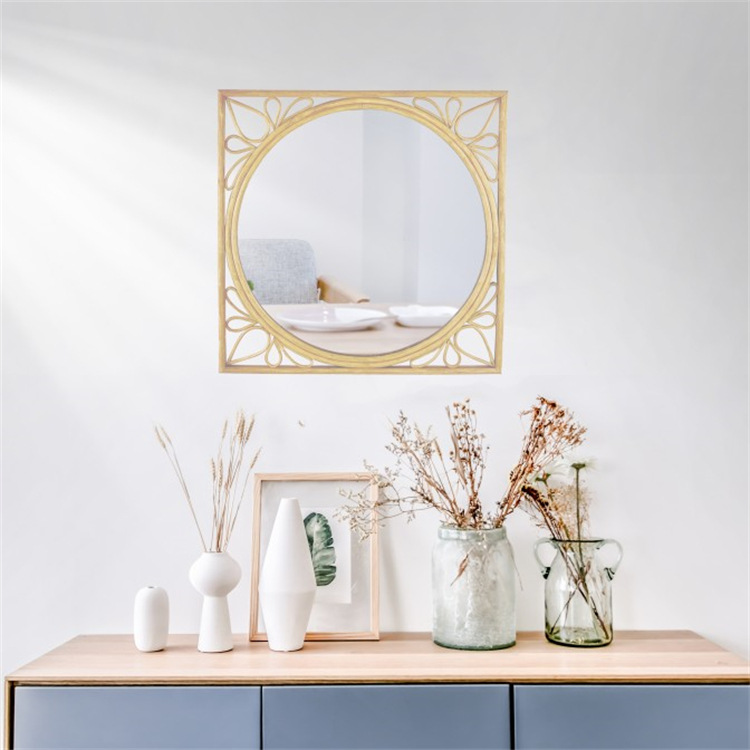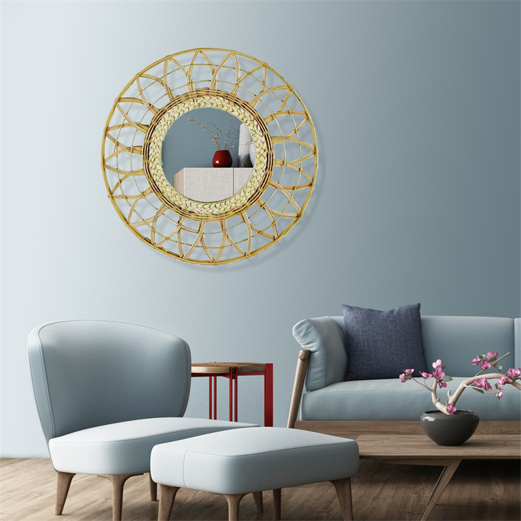 手作り藤編み鏡ホテル民宿装飾鏡壁飾り壁掛け撮影化粧鏡