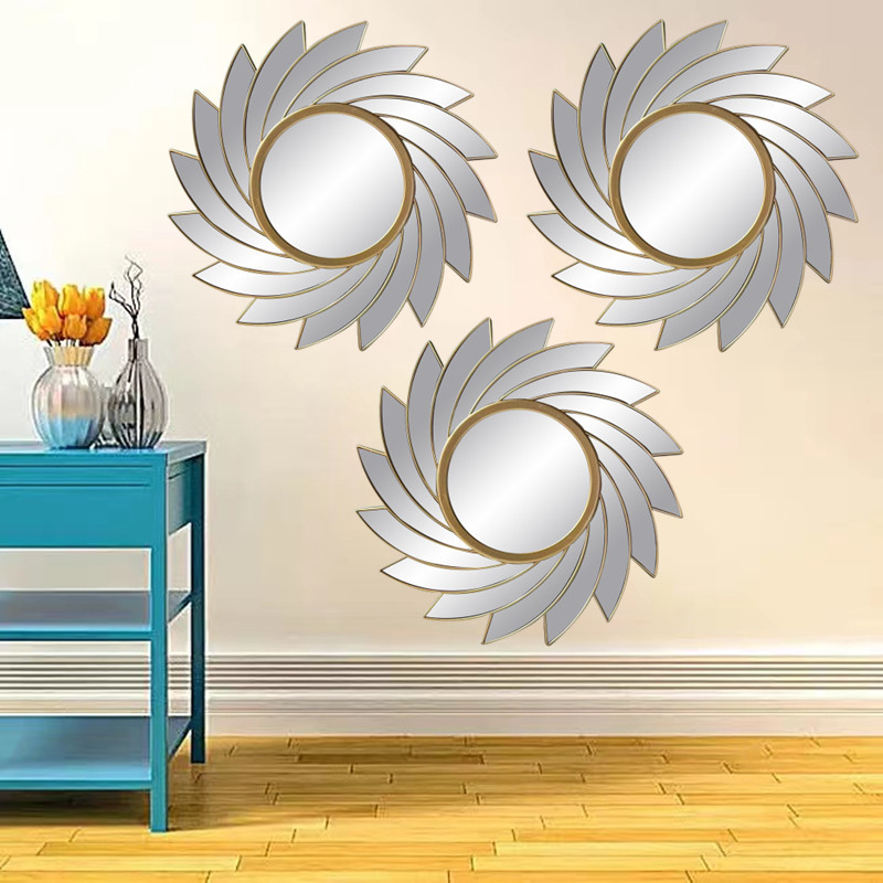 メーカー直供太陽花掛け鏡組み合わせプラスチックpvc高級塗装ソファー背景装飾鏡創意鏡