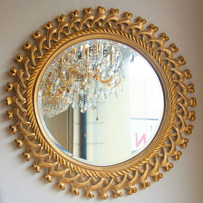 宮廷玄関彫刻鏡客間暖炉鏡円形アメリカ店装飾鏡ヨーロッパ式レトロ高精細銀鏡