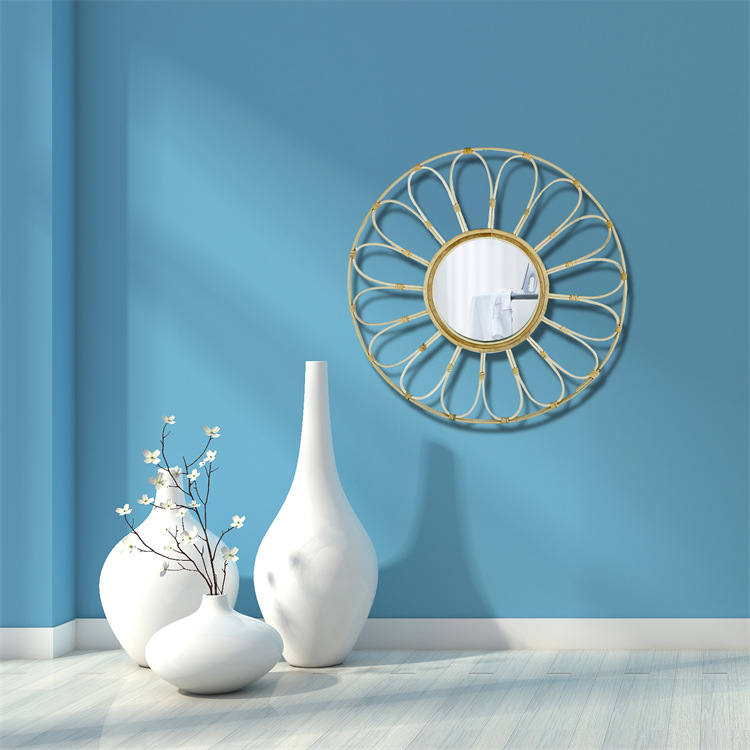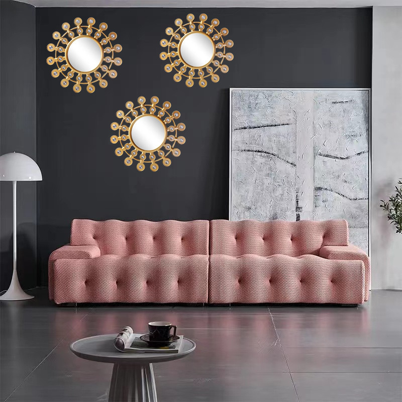 メーカー直供アメリカ円形太陽花ソファー背景壁壁掛けセット装飾鏡掛けレストラン玄関鏡