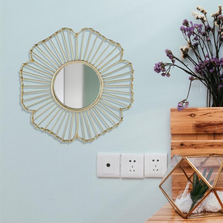 柳編み装飾鏡ins北欧藤編み手作り鏡民宿ホーム壁掛け化粧藤編み鏡