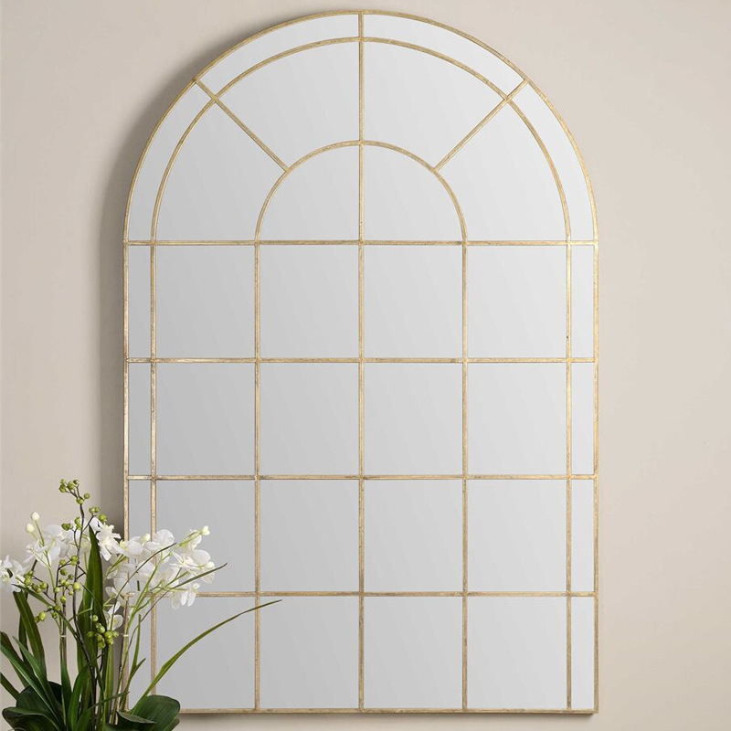 ヨーロッパ式の窓型の装飾の鏡の客間のアイデアのアメリカ式の鉄の芸の壁掛けの鏡の暖炉のアーチ型の壁の装飾の玄関は壁の鏡を掛けます