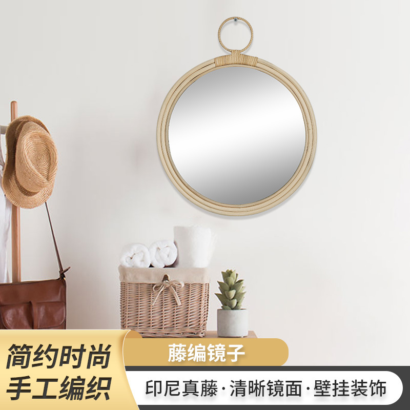 藤編み鏡ins北欧藤編み手作り鏡民宿家庭壁掛壁掛け化粧鏡枠
