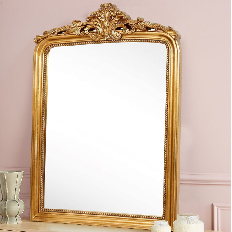 フランスの化粧台のデスクトップの化粧鏡の寝室の壁掛けの復古の化粧鏡の芸術の彫刻の金色は古い装飾の鏡をします。
