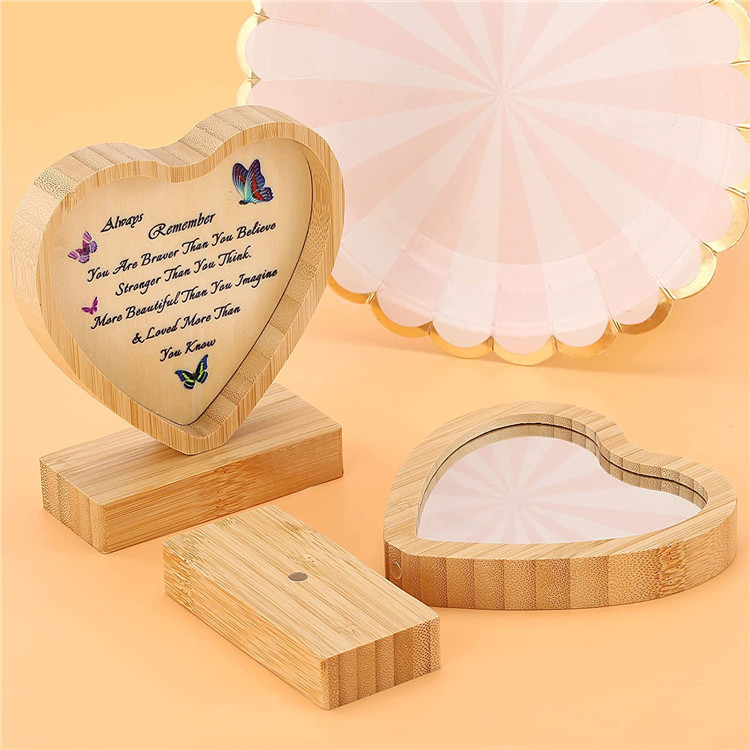 木のハート型の鏡竹の木の鏡の枠のデスクトップの置物の鏡0は妻の彼女の周年のプレゼントを送ります。
