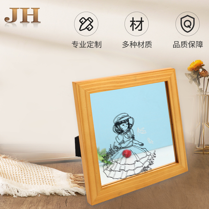 漫画のフォトフレームの正方形の実木の置物の家庭の子供シリーズは実木の小さい鏡の枠のメーカーの卸売りを鑑賞します。