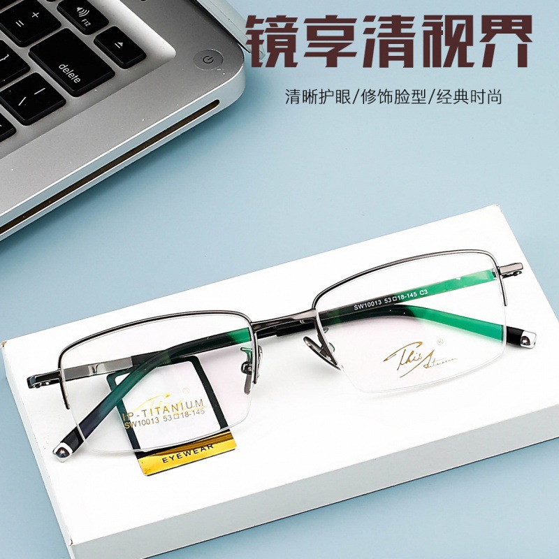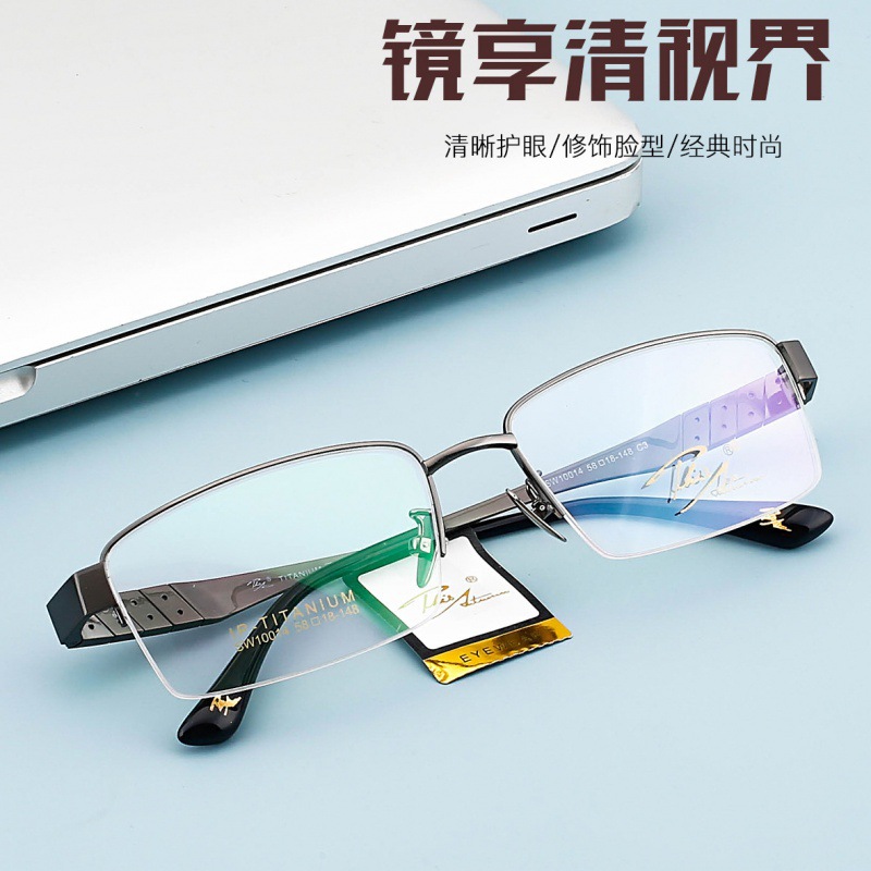 新品純チタン眼鏡フレームビジネスファッション半枠眉線眼鏡フレーム男性近視眼鏡男