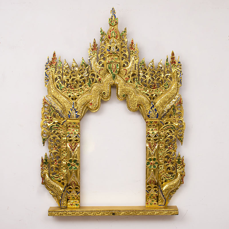 東南アジア風の金色の仏壇の額縁のタイの木彫りの金箔の壁掛けのタイ式のクラブハウスの柔らかい壁の装飾品