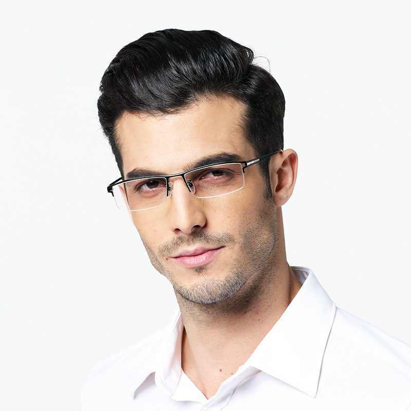 クラシック新作純チタンメガネ半枠近視メガネフレームビジネス男性メガネフレーム