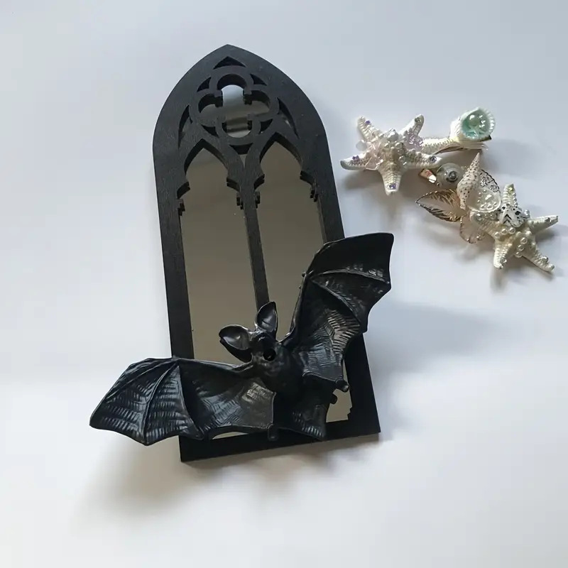 クロスボーダー新製品ゴシック大聖堂の窓壁ミラー立体コウモリハロウィン装飾壁ミラー