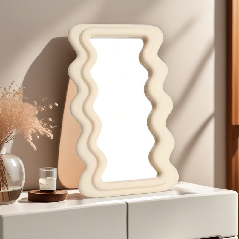 波型特殊形状化粧鏡テーブルトップホーム化粧鏡女の子寝室インスタイルインターネット有名人ミラー化粧鏡
