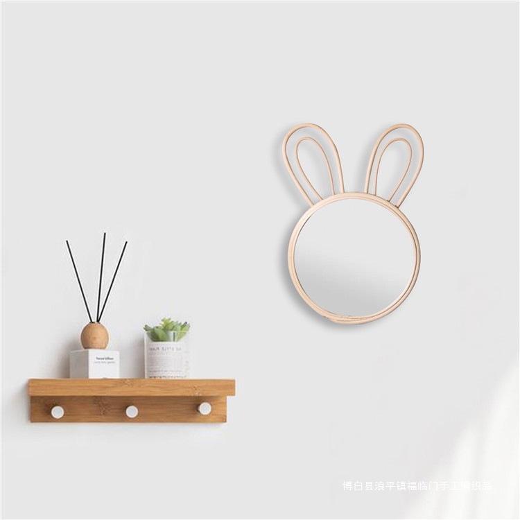 北欧手作り籐装飾ウサギミラーホームステイ装飾ミラー壁掛け写真撮影ドレッシング化粧鏡