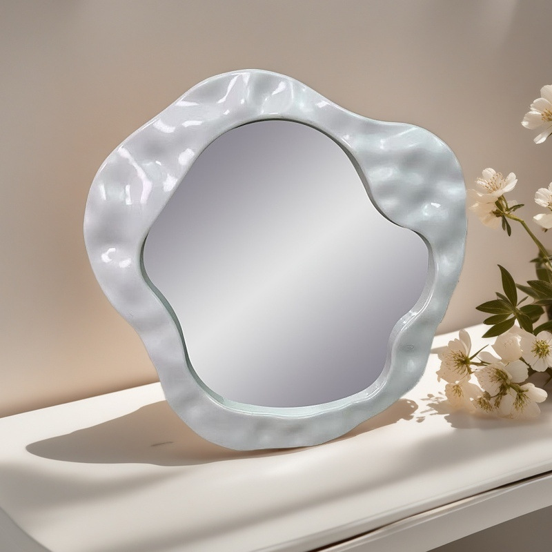 クラウドミラー壁掛けイン化粧鏡不規則な波ミラードレッシングフラワー特殊形状フレンチ装飾ミラークロスボーダー