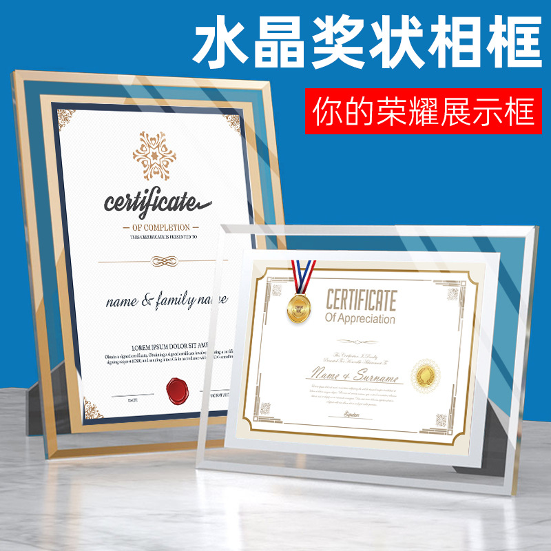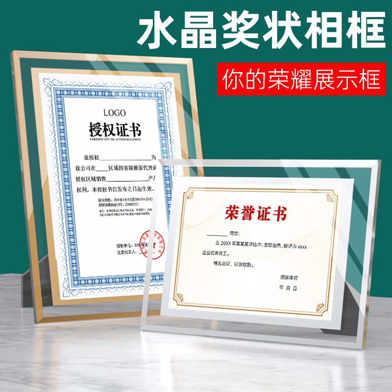 クリスタルフォトフレーム a4 名誉証明書フレーム ガラステーブル認定書証明書フレーム 壁掛け額縁 テーブルフォトフレーム