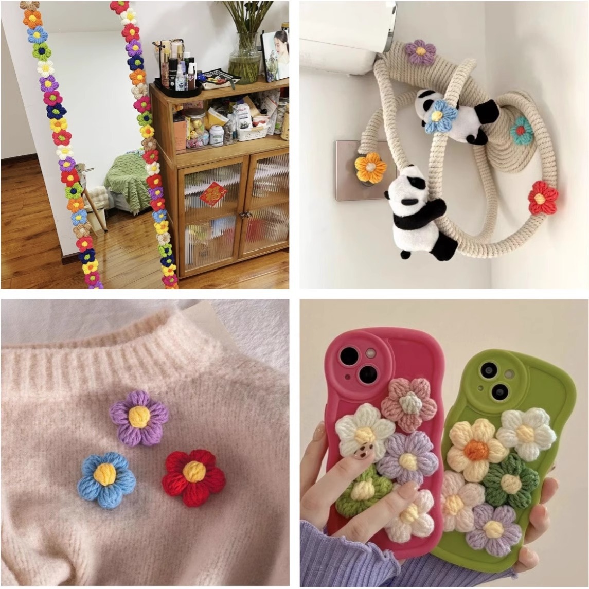 シュークリームの花のニットの毛糸の材料は辺の全身の鏡のアイデアを包みます。