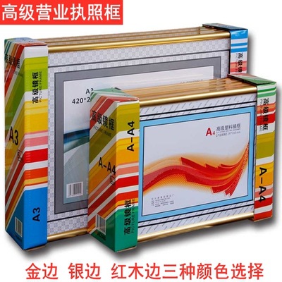 A3 A4 4k鏡枠営業執照枠税務登録証枠フォトフレーム証明書枠金辺銀辺壁掛け式