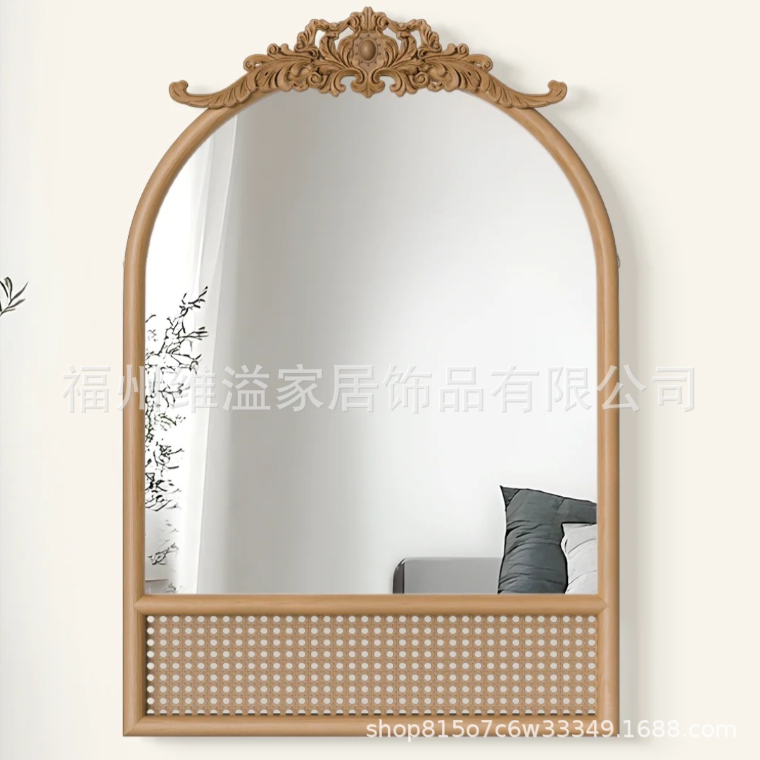 2025国境を越えたフランスのレトロな木藤彫刻装飾鏡化粧鏡シンプルな木の彫刻