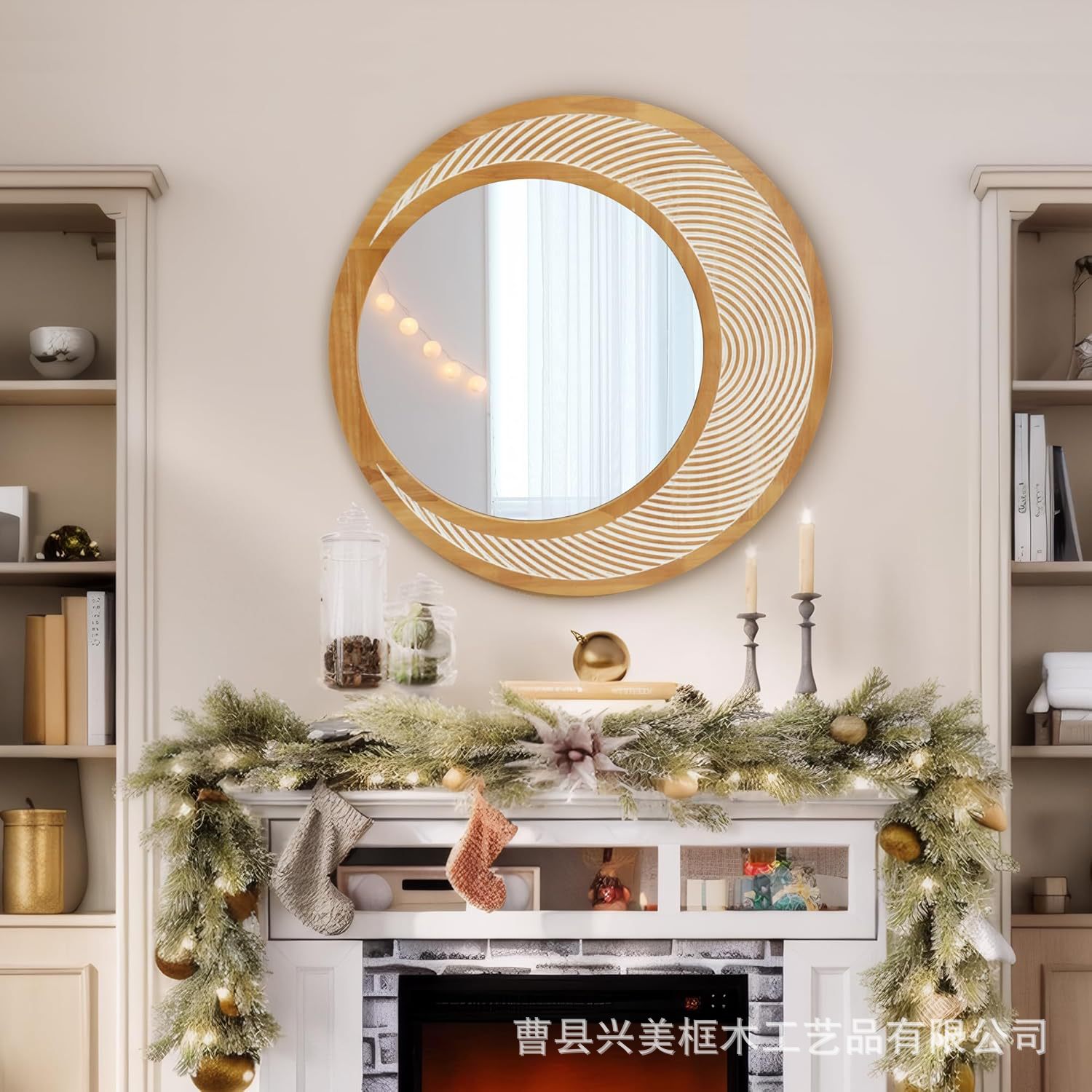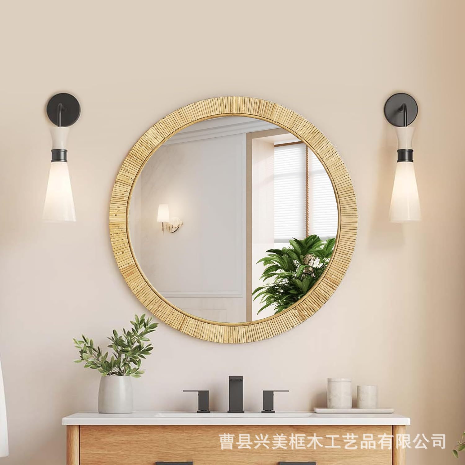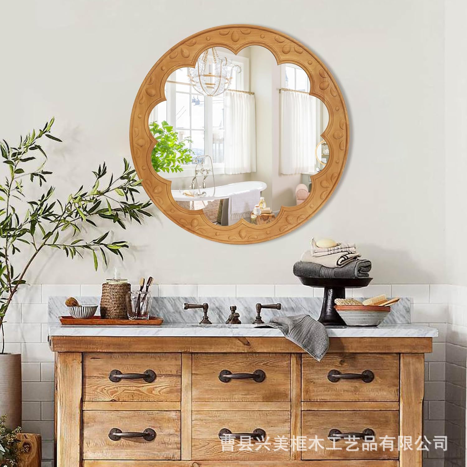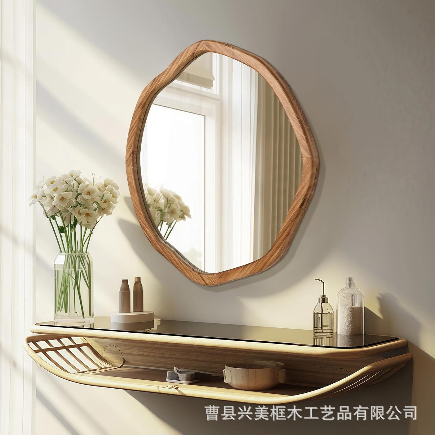木製北欧浴室鏡ヨーロッパ式シンプルなトイレリビングホテル木製枠付き鏡洗面台壁掛け鏡