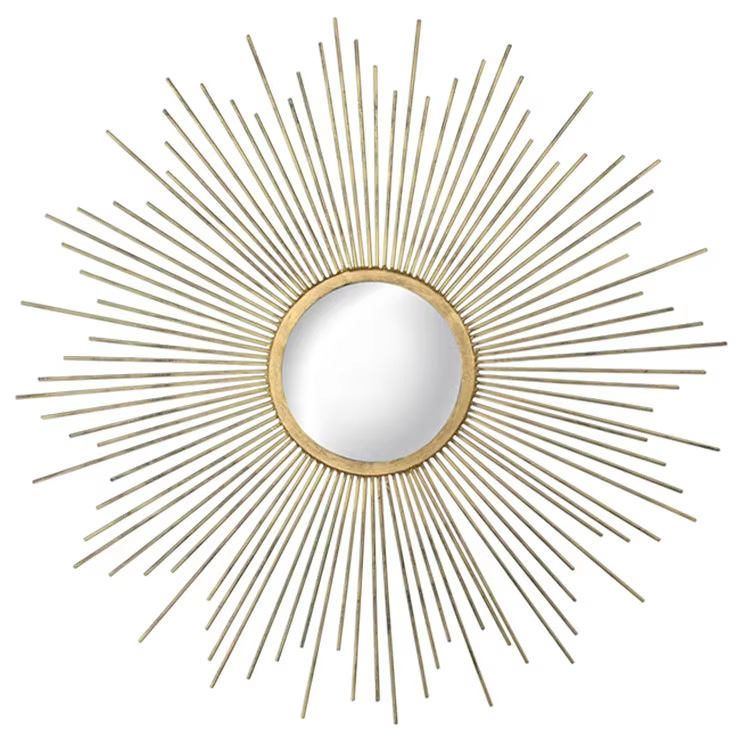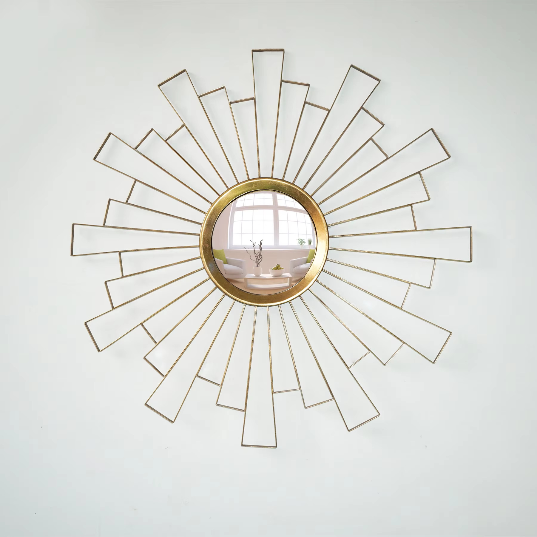 金属製壁掛けひまわりアイアンアート壁飾りリビングルームミラー金箔アート北欧風装飾ミラーレトロ