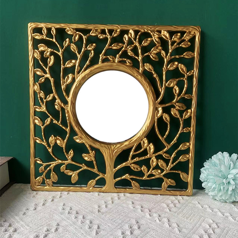 メーカーは卸売りの四角形の壁掛けの金色の銀色の装飾の鏡の木の形の葉を供給して鏡の玄関の背景の小さい鏡を掛けます。