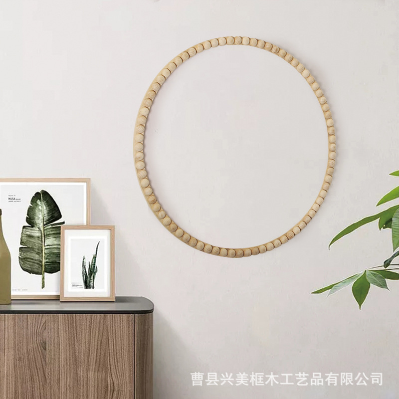 ヨーロッパ式ins風実木円形鏡枠実木鏡枠家庭用リビングルーム