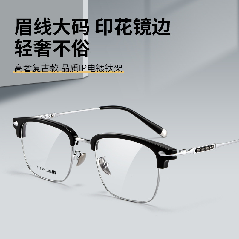 新型大型フレームレトロ純チタン眉線メガネフレーム近視メガネ男全フレームビジネスチタン合金メガネフレーム