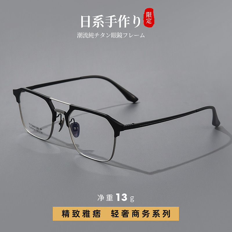 新品bsf9204chチタンメガネフレームビジネス纯粋なチタンメガネフレームダブル梁レトロ近视メガネ男