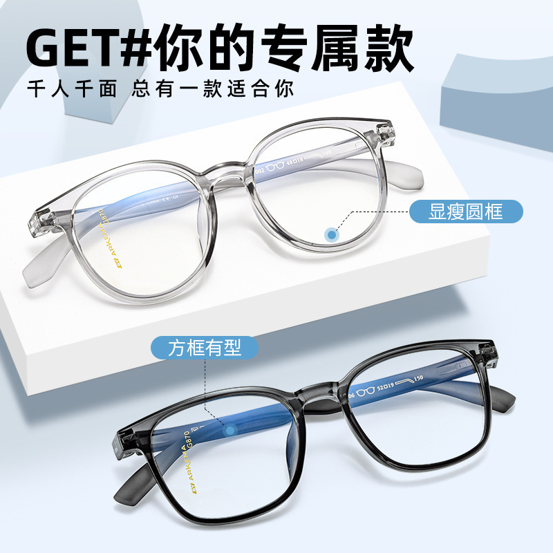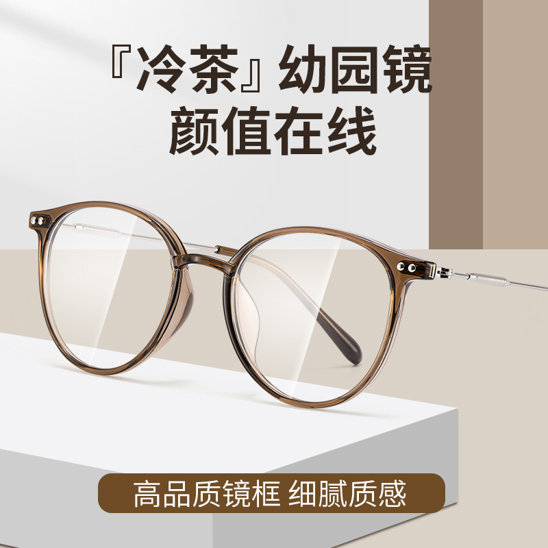 新品tr90レトロ冷茶色ブルーライト防止メガネフレームネット赤すっぴんフラットミラーレディース近視スタンド6822