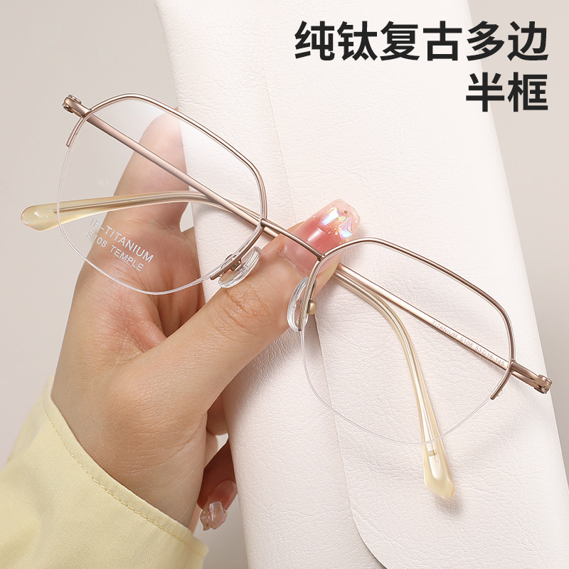 新品bsfs108eレトロ多角形半枠メガネフレーム純チタン付き度数メガネフレーム