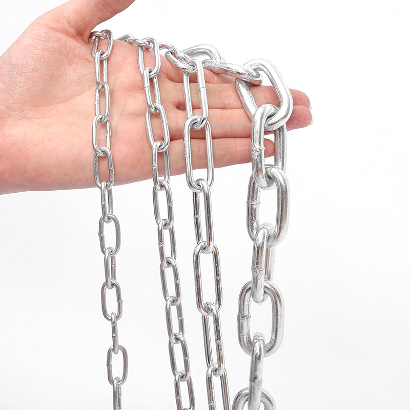 工場から直接供給される太い亜鉛メッキ鉄チェーン 6mm-20mm、しっかり溶接され、カスタマイズされた輸出品質で加工されています。
