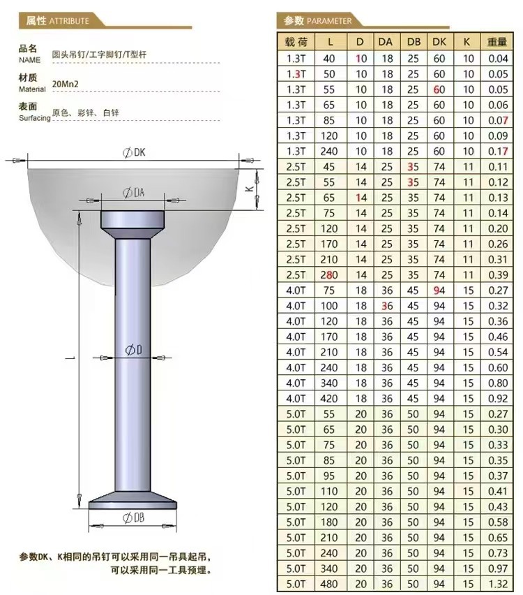 吊り釘 丸頭吊り釘 建築用埋め込み金具 亜鉛メッキ吊り釘 亜鉛メッキ丸頭吊り釘