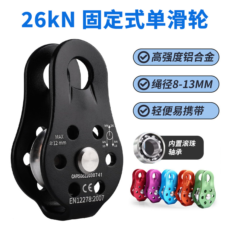 クロスボーダー 26KN 屋外クライミング固定シングルプーリー洞窟探検救助高所横断リフティングアルミニウム合金小型プーリー
