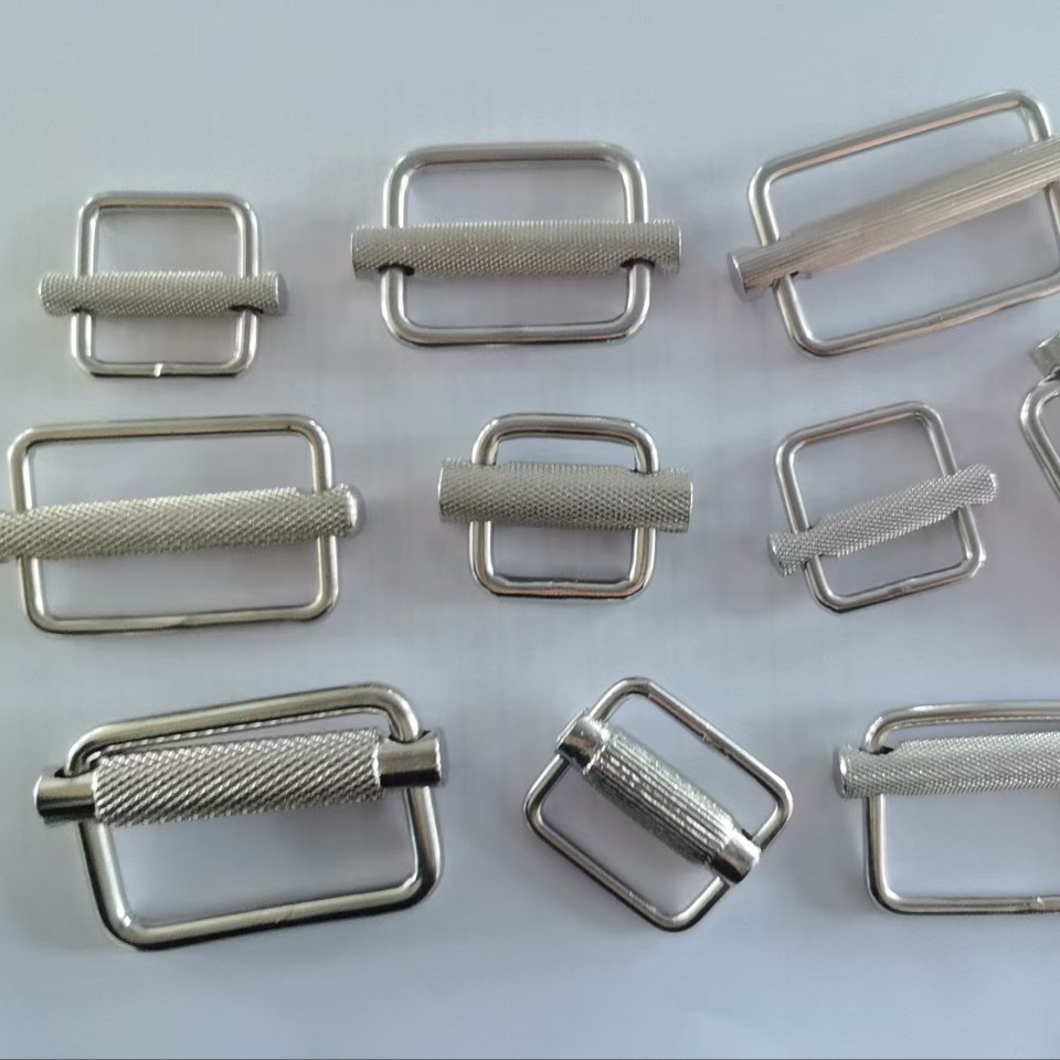 卸売金属ステンレス鋼ローレットバックルベルトバックルバッグ調節可能な水平バー 3 速バックル調整バックル