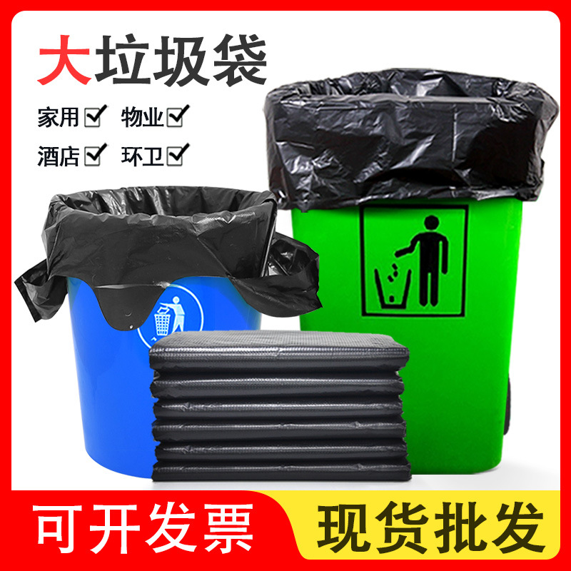 ゴミ袋黒色大サイズ平口厚手特大ビニール袋使い捨て不動産ホテル厨房商用卸売り