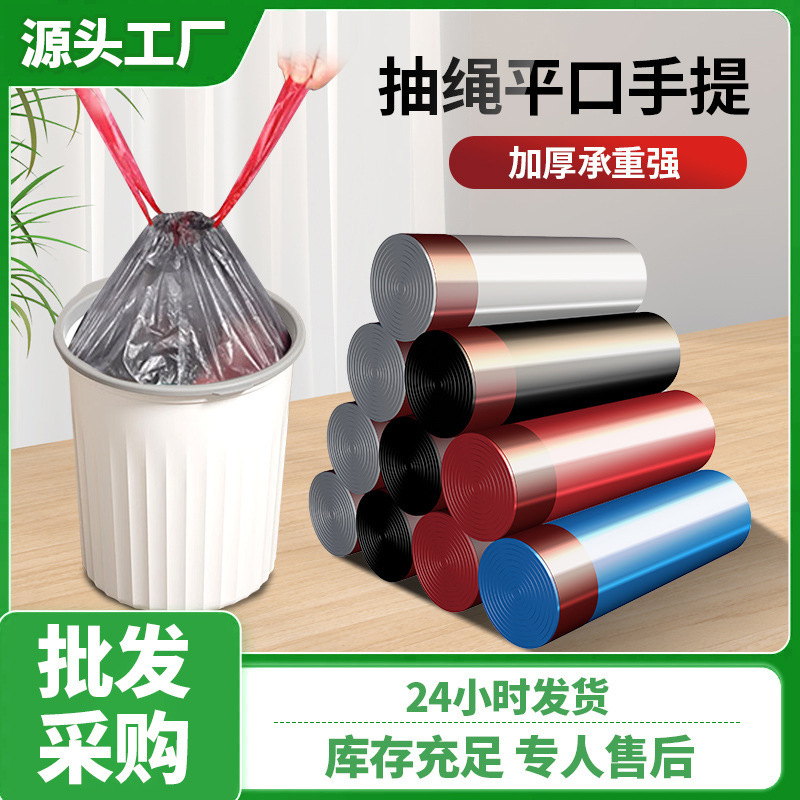 ロープゴミ袋家庭用キッチン黒手提げ平口式ビニール袋を厚くしてオフィス卸売りを大きくする