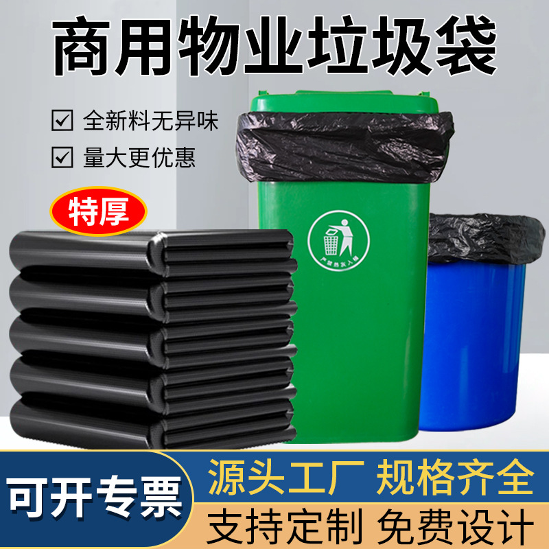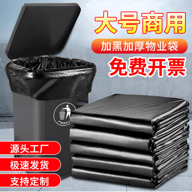 平口ゴミ袋大サイズ黒色厚手ホテル飲食環衛不動産工業使い捨て商用ビニール袋