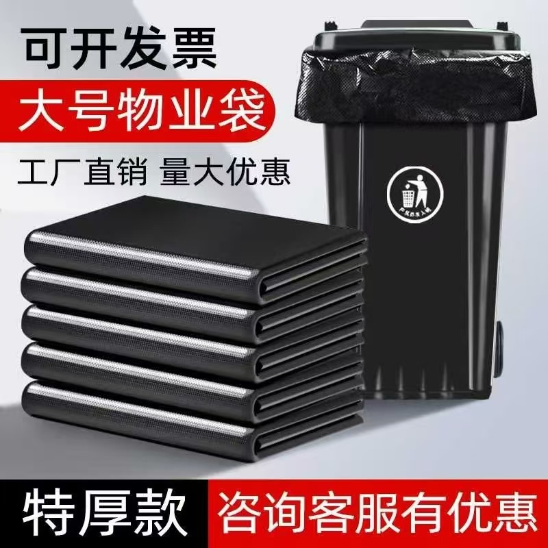大ゴミ袋大量卸売り厚手不動産ホテル環衛商用ゴミ袋大型黒色平口ゴミ袋