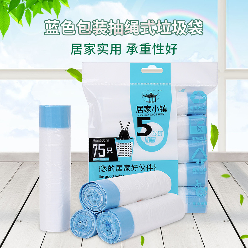 ひもを引くゴミ袋家庭用の厚いサイズを大きくして、50 × 60点で台所を切って自動的に口を閉じてビニール袋の卸売りをします。