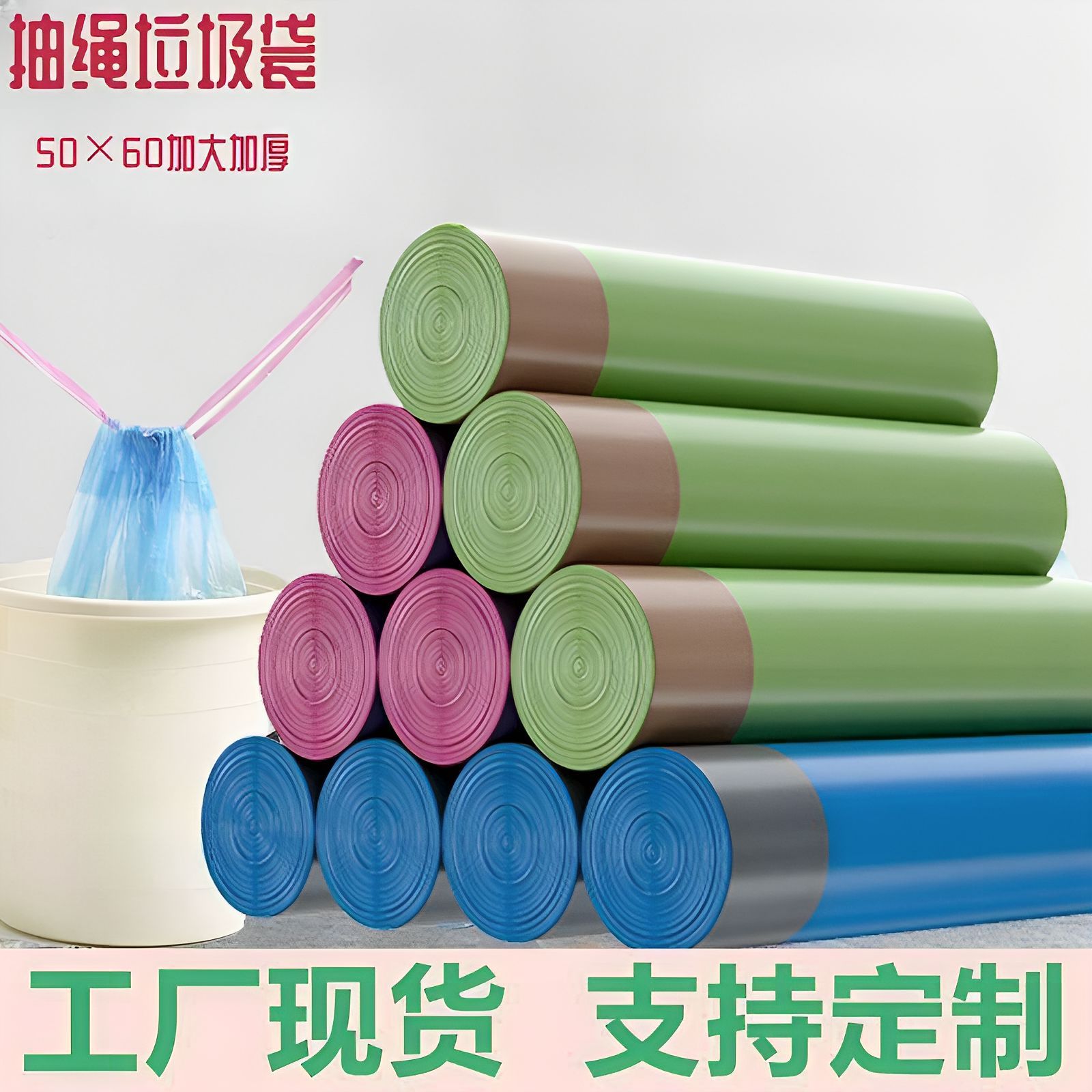 家庭用の大きな巾着ゴミ袋、厚みのあるポータブル、壊れにくい、家庭用の大きなプラスチック袋、卸売
