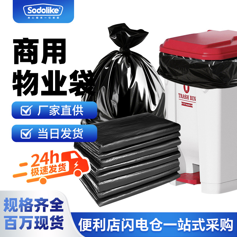 黒色大ゴミ袋使い捨てホテル環衛不動産平口ビニール袋家庭用厚いゴミ袋大サイズ