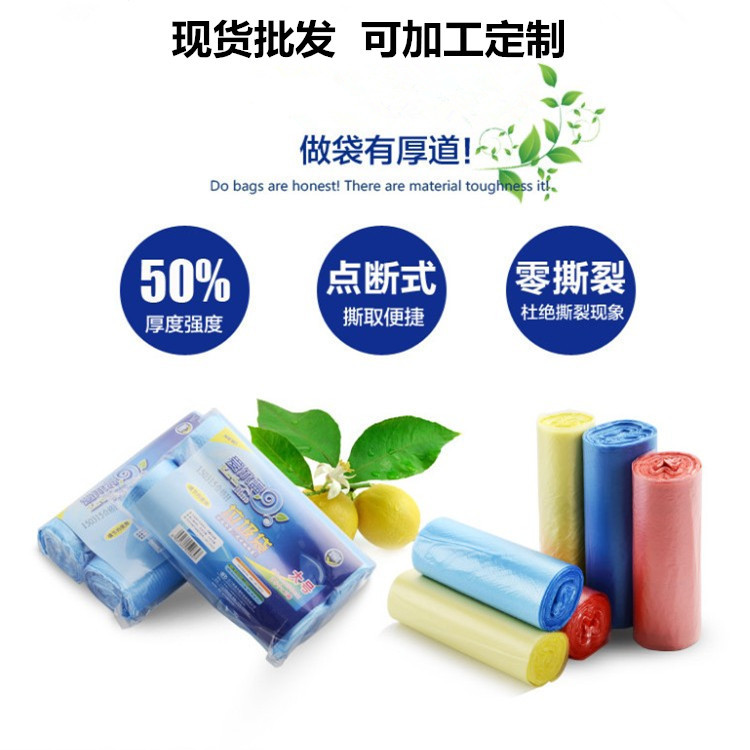 使い捨てカラーベスト手持ち式紐引き平口ゴミ袋家庭用黒色点断式5巻メーカー卸売り