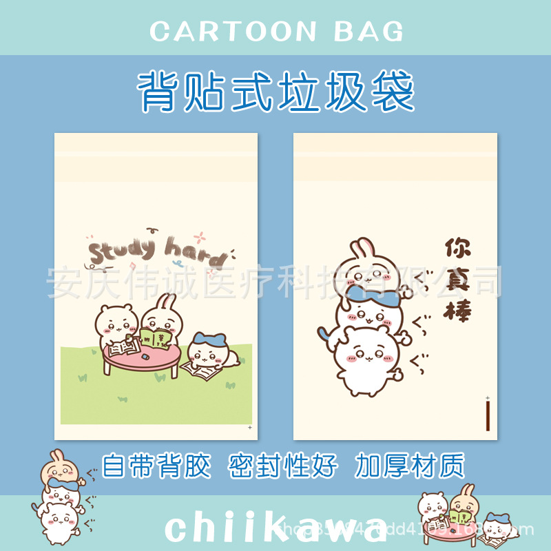 かわいいアニメ高颜値青心兎巾着式家庭用キッチン手持ち式厚手ゴミ袋プリント100本