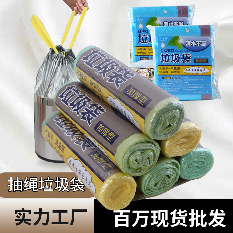 家庭用手提げ式ゴミ袋厚手大サイズ収口巾着式ビニール袋着縄厨房ゴミ袋卸